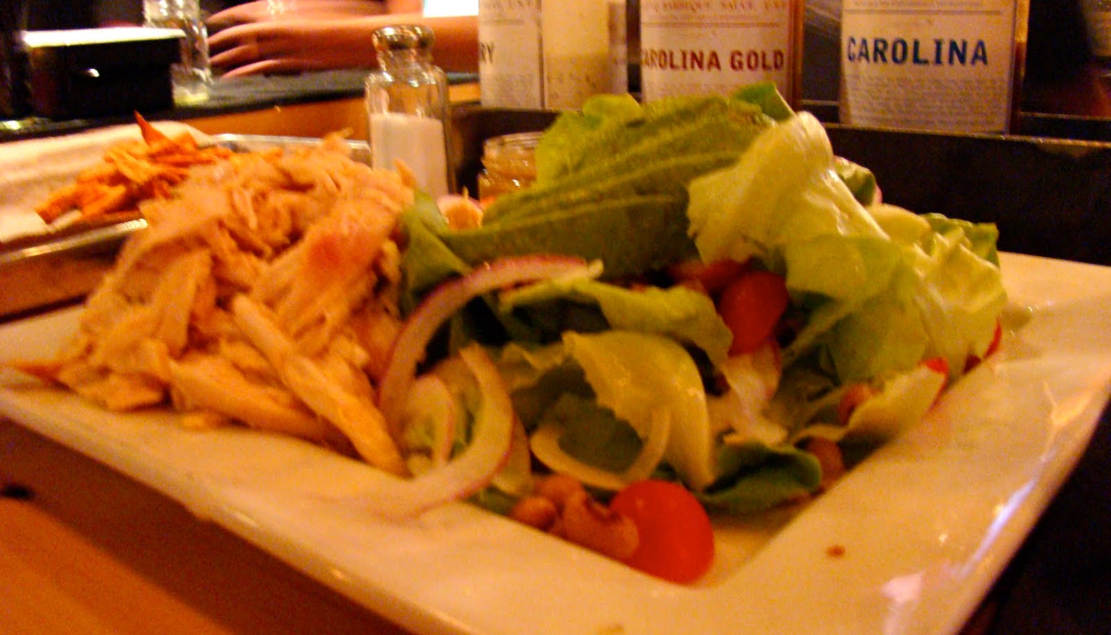 Four sauces at Lilly's BBQ  | "This is day eight," bartender Sharon reported as we informally interviewed her during a busy shift this past Saturday evening as we sat at the bar of Lillie's Q Urban BBQ and dived into fried pickles, sweet potato fries, and salad topped with Fried pickles, each more delicious than the next!  | pulled barbeque chicken.