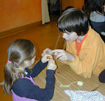 Grade 1 - Learning To Knit Grade 8 students have been visiting grade 1 and teaching our first graders to knit.