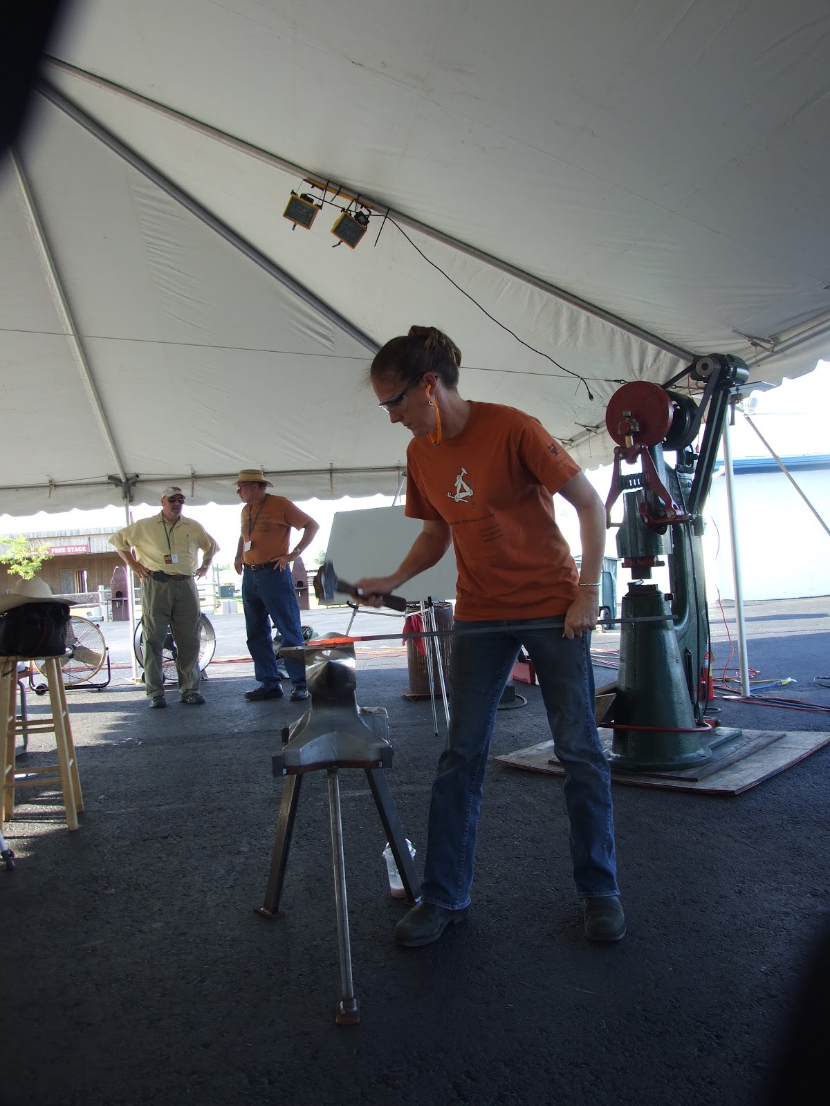 On Day 1, There were lines at the registration desk most of today as a majority of the expected 800 attendees arrived through the day. Demonstrators set out their equipment and tools. Many began forging and instructing soon after the opening ceremonies were over.