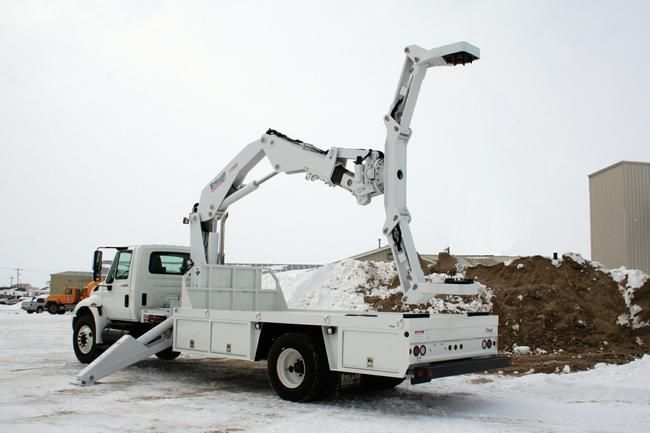 "Over the years Stellar has become the leader in OTR tire manipulating cranes," says Tim Davison, manager of bodies and cranes. He continues, "Stellar achieved this status by its unequivocal ability to listen to its ever changing customer's needs, as is the case with the 17000. Our customers asked us to develop a crane with increased capacity while still remaining on a single axle chassis, and we did just that, and more." Davison concludes, "We started with a clean slate and designed a strong, smooth performing crane from the ground up. Not only is it the highest capacity crane available on a single axle chassis, it is also designed and built strong, and easy to maintain and service."
