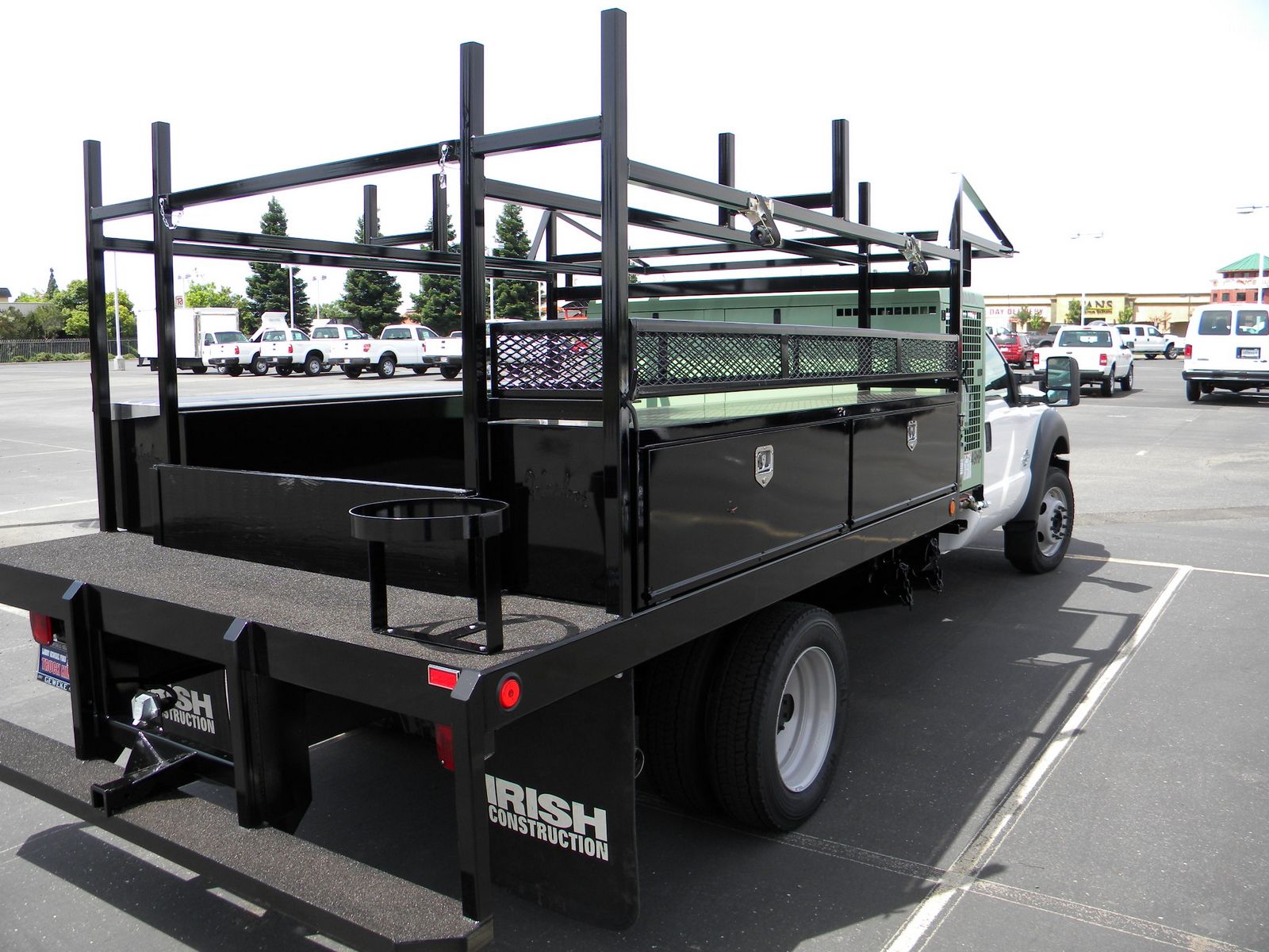 North Bay Truck Body in Cordelia, CA recently delivered one of many units for Irish Construction to the selling dealer, Paul Brown of Larry Geweke Ford in Yuba City, CA. The client has specific needs in their flatbed fleet and Bob Dias at North Bay Truck Body was happy to work with Irish Construction to fulfill their needs. Based on what I saw in this truck, it is a sweet rig and well designed.