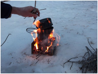To be fair, cooking with twigs is not a push-button fire. But it only takes a little common sense to get a hot fire that rivals any toxic-gas stove. After all, the cooking is done with the tiny twigs one might use as kindling for a larger fire. Even on the rainy days, I find dry twigs sheltered under trees. I have used the stove in the rain, in the snow, and in fair weather, of course. It has not let me down yet.