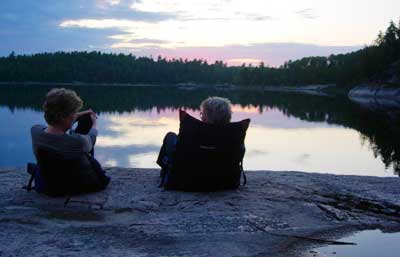 "Perky Gazelles! I can't do perky gazelles!" One womens' trip participant confided in the rest of us on the first night that she had been afraid that she would be the only 50-something on a trip of otherwise young, fashion-conscious fitness bunnies. None of us fit that description. In our wide-brimmed hats and quick-dry shirts and zip-off pants, a few of us looked like we could have stepped out of the pages of the Piragis catalog. Function over fashion is the rule in canoe country. In the five days which followed, we made friends and memories that would last a lifetime.  The height of summer is such a special time in canoe country. Young animals are learning to fly, swim, and run. We always encounter animals, but they surprise us with when and where. Maybe a loon comes up a few yards from the canoe. An eagle watches from its perch or flies right overhead. Beavers swim past our campsite with fresh branches to decorate their house. Each week brings a new flush of wildflowers. The women's trip is scheduled for July 8 - 13, and things are shaping up well so far this year for a good supply of blueberries.  Blueberries. I like to cook with them. The lines between dessert and breakfast get blurry when berries are involved. If we don't eat blueberry pancakes or stir berries into our oatmeal, we might eat blueberry muffin for dessert. Or why not eat them straight off the bush? The bears do it. Well, we don't eat blueberries every day for every meal. Sometimes we have pizza, or fresh-caught fish on a bed of wild rice. On women's trips, we have plenty of the top-notch food that Piragis has become known for, and we eat well.  We burn the calories too. By paddling, we learn the meaning of working together. We take turns carrying the canoes and the packs. We pack up camp and move nearly every day, but we travel at a pace that allows us to savor our morning coffee, admire the scenery, stop for a few photographs, and take a leisurely swim when the opportunity presents itself.  But the best part of coming on a guided women's group trip is that you get to hang out with me! No, I am not stuck on myself in real life. I have great outdoor skills, since I have been canoe-camping nearly every summer since I was eight years old. I don't need to look at a map any more to travel Ely area canoe routes. But more importantly than all this, I like people. I like introducing people who have never or seldom been to the Boundary Waters to canoe country wilderness travel. I like telling stories around the campfire, and listening to the stories that others have. I like to see people have fun together.  If you're a woman, please consider joining us. If you're a man, encourage your wife, girlfriend, or significant other to come and experience the Boundary Waters with us. You'll be glad you did. The 2012 Summer Women Exploring Wilderness guided group trip is July 8 - 13. Call Drew or Adam 1-800-223-6565 today and we can get your spot reserved. Looking forward to meeting you!
