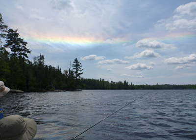 "Got your recent e-mail and want to share my trip report and a couple of photos. We entered on 2 June via entry point 16. Traveled up the Moose river through Nina Moose Lake and camped on Agnes. Visited Oyster lake to try (unsuccessfully) to catch some lake trout. The photo of the rainbow sun dog was on Oyster. If you see that in the sky, head for shore because it means a strong storm is coming. We had VERY strong winds and hail for about 30 minutes. An hour later it was still and warm.