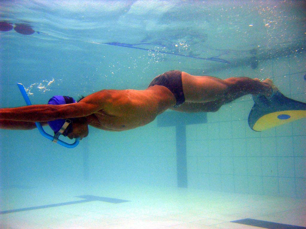 Side Note The sport of Finswimming is primarily an underwater discipline, wherein competitors use a monofin to propel themselves, dolphin-like, through the water. Athletes often carry an oxygen tank or some other type of breathing apparatus to enable them to stay underwater continuously. A promotional video for the Russian finswimming organization can be viewed here.