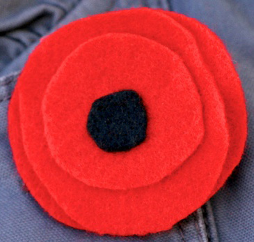 Lieutenant-Colonel John McCrae, a Canadian Medical Officer who fought during the First World War, is best remembered today for a poem he authored in May 1915. While serving at a medical station near Ypres, Belgium, an area traditionally called Flanders, McCrae witnessed some of the fiercest fighting of the war. On the day following the death of his friend and fellow soldier Lt. Alexis Helmer, McCrae wrote his now famous work as an expression of his anguish over the loss of his friend and a reflection of his surroundings -- wild Poppies growing amid simple wooden crosses marking makeshift graves. His poem was first published later that year in the British magazine Punch. The words of his poem expressed the fear of many soldiers who fear that they will be forgotten and that their death will have been in vain. In November 1918 an American teacher named Moina Michael read McCrae's poem and made a personal pledge to always "wear a red poppy of Flanders Fields as a sign of remembrance and as an emblem for keeping the faith with all who died." Others followed suit and soon the red poppy became a symbol of remembrance of those who have died in war. Each year, in Canada and throughout the Commonwealth states of the United Kingdom, red poppies are worn during the week leading up to Remembrance Day (Veteran's Day in America) in honor of those who have died.