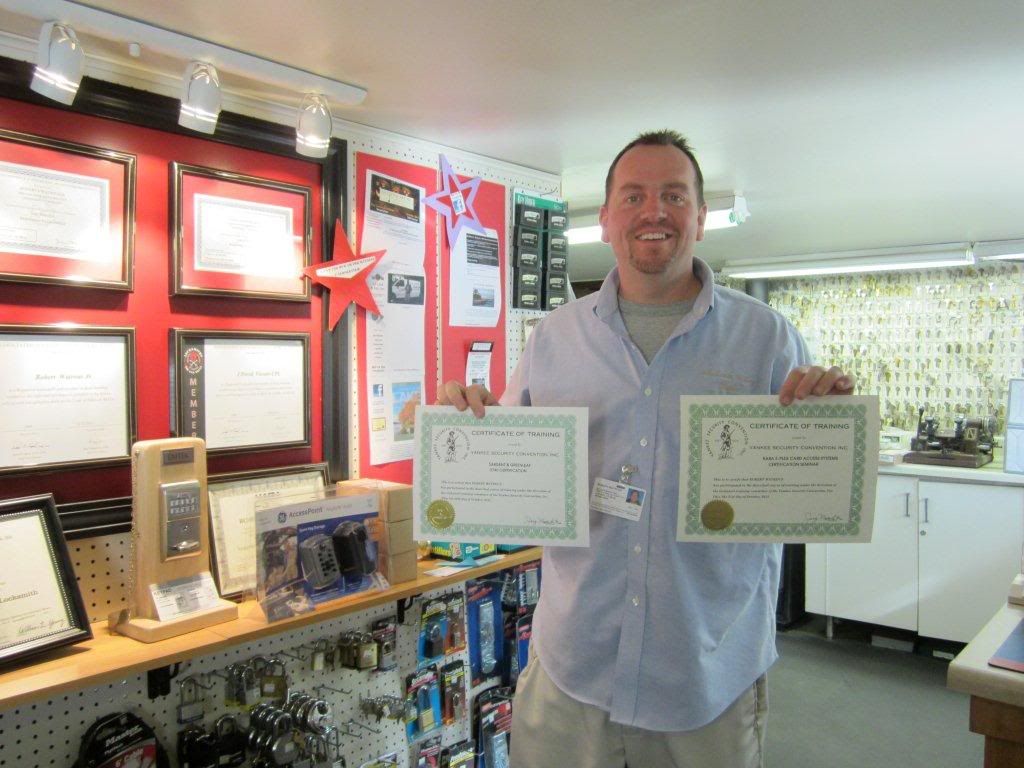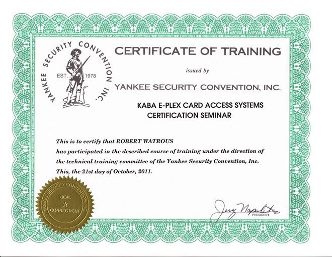 Our Lock Tech Bob Watrous spent two full days at the Yankee Security Conference, gaining two certifications. We are proud to have Bob on board at AA Lock & Key and want to acknowledge his 9th Anniversary with AA Lock & Key this month, and thank him for his dedicated service to the company! Thank you, Bob! Kaba E-Plex Card Access Systems Certification Seminar