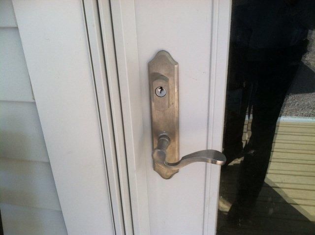Here are some pictures of a project where a commercial customer built a new building and had 7 doors that needed locks installed. Dave was able to locate hardware that matched the shape and style of existing exterior doors and was able to incorporate an Emtek pushbutton lever on the door that will have the most usage. The customer was very pleased with the final product, as was Dave.