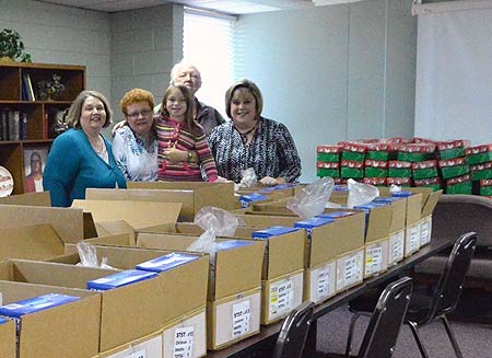 The people of Mt. Olive, Hickory, over the month of November served local and international families through two church projects to feed the hungry and provide Christmas surprises for children around the world. Both projects were supported with funds from Thrivent Action Grants. The church's Micah's Cupboard ministry packs food boxes for families in need to use during extended school holidays. For one project, 36 volunteers packed 101 food boxes to be distributed through six schools and three individual families for the Thanksgiving holiday.