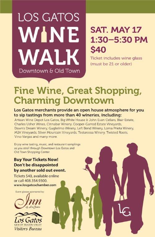 The Inn of Los Gatos is offering 20% off with your Wine Walk ticket purchase. Offer good Friday, May 16 through Sunday, May 18th. Call 408-356-9191 for details and reservations.