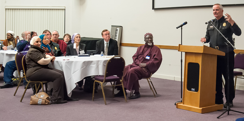 The principal speaker was Montgomery County Police Chief Tom Manger, answering questions ranging from racial profiling and mental illness to police training and protecting youth.