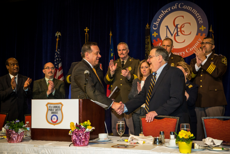 The 41st Annual Montgomery County Chamber of Commerce Public Safety Awards ceremony in March drew leaders from the county's five public safety agencies and 1,200 grateful county residents, including Dr. Hedieh Mirahmadi and Rev. Mansfield "Kasey" Kaseman, representing the Faith Community Working Group. Mirahmadi was seated with our partners in the Police Department and Kaseman with our partners in the Fire and Rescue Service.