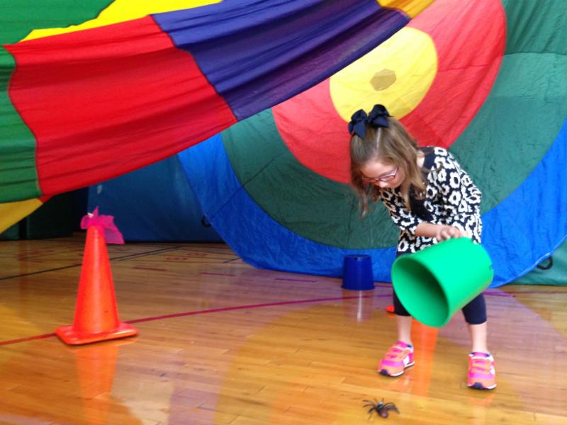 A Crow Island School student participates in the annual "Spooky Gym" tradition