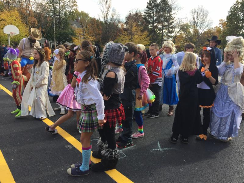 Students at Greeley School gathered for the annual Halloween "Ghost Dance"