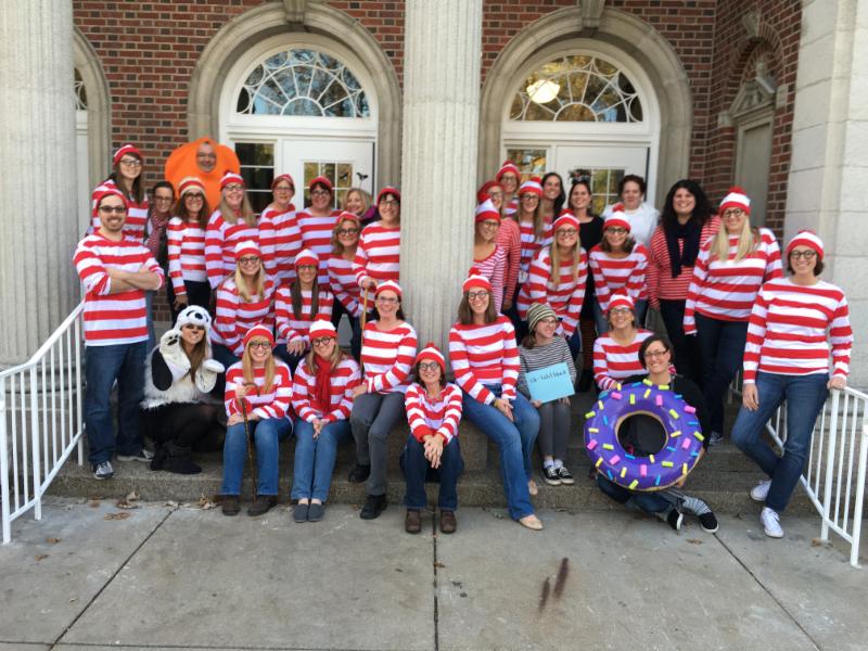 Teachers at The Skokie School dressed as "Waldo" for Halloween