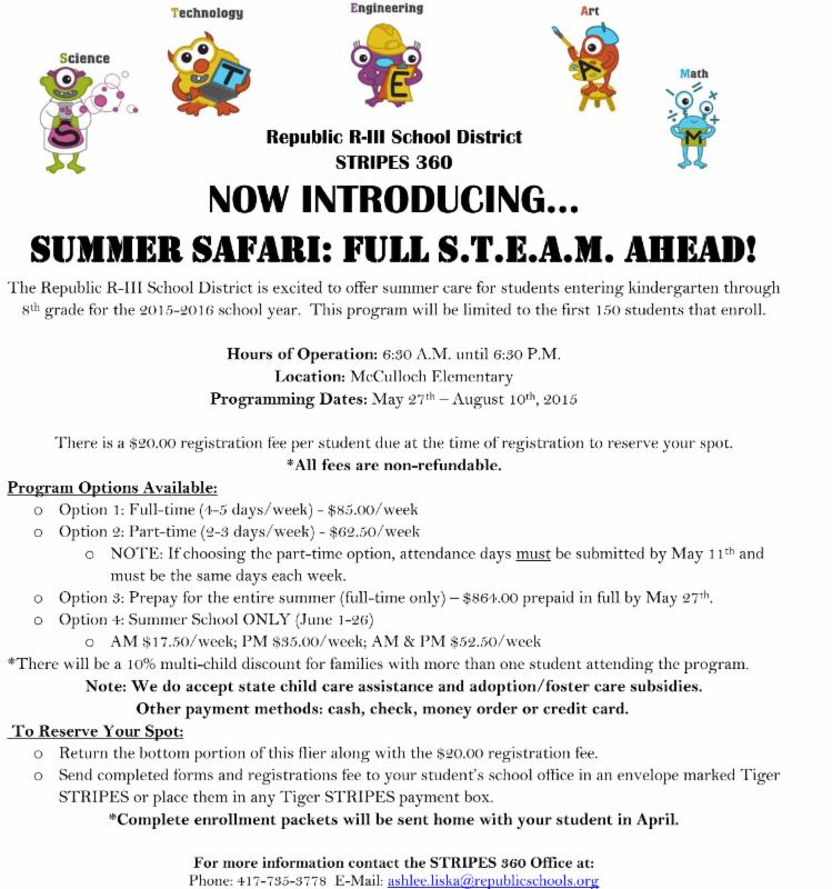 Registration for Summer Safari 2015 is officially open! Check out the flier below and visit our webpage HERE.