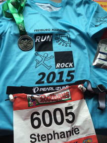 Running is like a diamond with its many facets. At first, the brilliance is created through conquering distances you never thought possible - first a 5k, then 10k, half marathon, marathon...maybe even an ultra! Then you start discovering other angles such as trails, triathlons, adventure runs, relays and destination races that continue to add light and excitement to the sport. Two weekends ago my sister and I traveled to Germany for our first international race - a half marathon in Freiburg which is near the Black Forest. The location has special significance to my sister because this is where she fell in love with running. During her junior year of college, she studied at the University of Freiburg, but had more free time than she had studies, so she began to run. And run. And run! The race course meandered through town, past the university and the famous blue bridge that she crossed every day - the same bridge I remember dragging my luggage stuffed full of peanut butter and other American treats when I came to visit her. It's amazing how much and how little a place can change in 20 years. One big change this time around was that we didn't have to lug our bags across the bridge thanks to the airline which managed to send our bags to Switzerland instead of Germany. (Important Lesson for Traveling Runners: always wear your running shoes and pack your race gear in your carry-on). The start of the race was delayed until 11am due to Palm Sunday Procession through town which made the six hour time difference a little more agreeable with our bodies. As we headed over to race start at the huge Sports Messe outside of town, it was cool to see people coming from all directions on foot, bike and bus with their yellow race bags strapped on their back. Despite the race having over 11,000 people, the parking lot was practically empty as everyone relied on public or self-propelled transportation. I wish our transportation infrastructure in the US was more agreeable to bikes, feet and skates. Unlike in the US, the men outnumbered the women at least 2 to 1. The greatest part about that was the lack of a line for the women's bathroom - so awesome! In addition to their regular bathrooms, the men also had open-air, fully-exposed "porta-potties" that, like a train wreck, I couldn't stop staring at in utter wonder...and laughter! I got a kick out of the men's outfits as well - lots of capris with a brightly colored top that matched their brightly colored shoes. The women weren't nearly so coordinated. And then there was the guy with "follow me" on his bum... The weather, while better than the winter ugliness we had trained in, was a raw 40 degrees with rain and a strong wind. Later, one of the runners would post on the race's Facebook page: Gegenwind stärkt den Charakter (headwind strengthens the character) - befitting of the German ethos of discipline and hard work even when the odds are stacked against you. In my case, the weather taught me a valuable lesson about the need for Body Glide while wearing shorts for the first time in many months. Of course, when I got back to the hotel, I discovered that the sample of what I thought was a gel for sore muscles in my race bag, was actually Germany's version of Body Glide. It definitely would have been helpful if my grasp of German extended further than Hello, Goodbye and Thank You - though, I can now confidently add "scheuern" to my vocabulary! All along the course the cherry trees, daffodils and forsythia were in bloom. I almost needed sunglasses the green was so vivid! The scenery was beautiful too as we kissed the Black Forest (the only hills besides the bridge) and criss-crossed through the beautiful old town - though, after a few kilometers of cobblestones, I started to curse the old town! The best part hands-down were the people. From fellow runners who exchanged pats on the back and glances of "we've got this" to the youngsters extending their hands to give high-5's, the race announcer who cried "USA, USA!" when we crossed the halfway mark to the over 40,000 spectators cheering "Hup, Hup!" and ringing cow bells, the race proved that the language of the run needs no translation. We all run as one. Live Fit, Steph