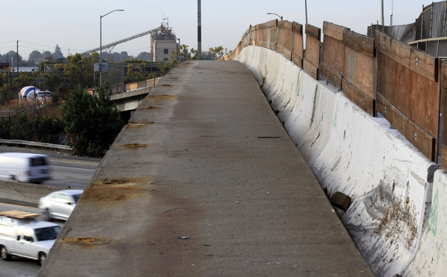 Cars speed by under the 23rd Avenue overpass on Interstate 880 in Oakland, Calif.,