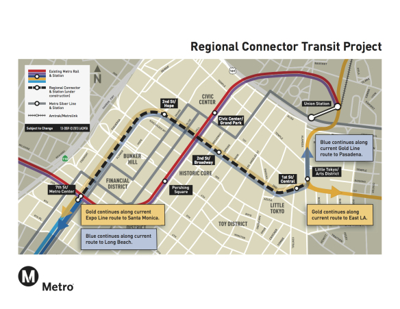 The Metropolitan Transportation Authority in Los Angeles is building the 1.9-mile Downtown Regional Connector that will connect with three other lines. However, utility issues have already consumed a good portion of the project's reserve fund, and changes have upped the cost, meaning that the $1.4 billion line will require about $130 million more.