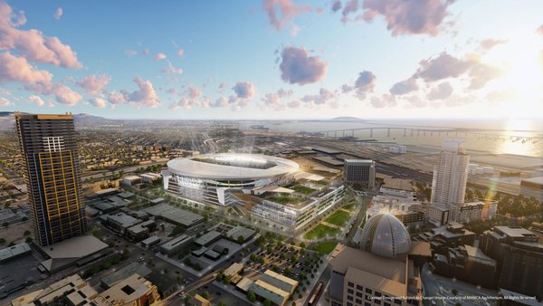 "This is a conceptual design intended to convey the Chargers' vision for what the stadium and convention center expansion could look like," the Chargers stated. "The final design will be the result of a design process conducted with the Joint Powers Authority, the City or other governmental entity designated by the City to coordinate the construction of the stadium and convention center expansion." San Diego voters would have to approve the stadium-center expansion project if it makes it on the ballot.