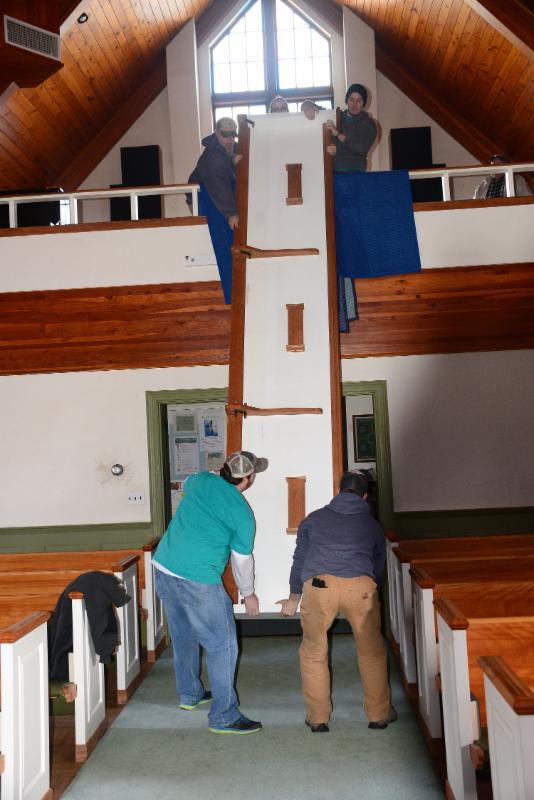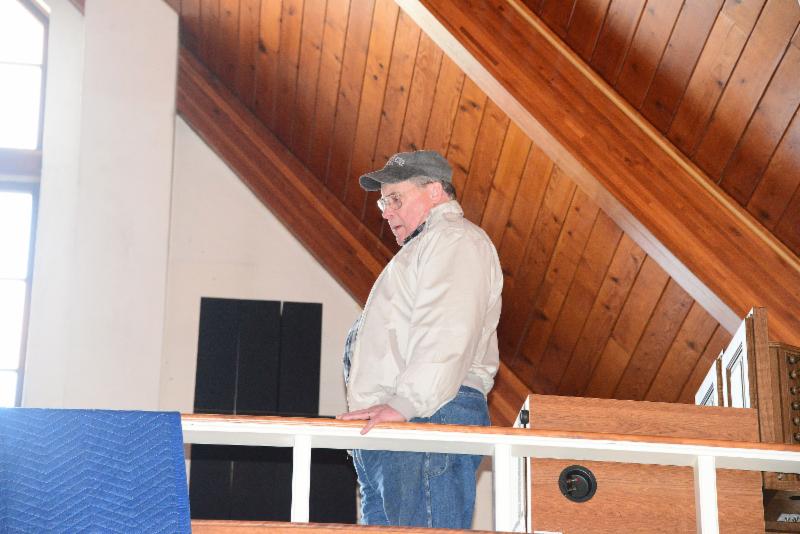 Earlier in the week Phil Wasmuth captured the removal of the pew from the loft, making way for the organ.