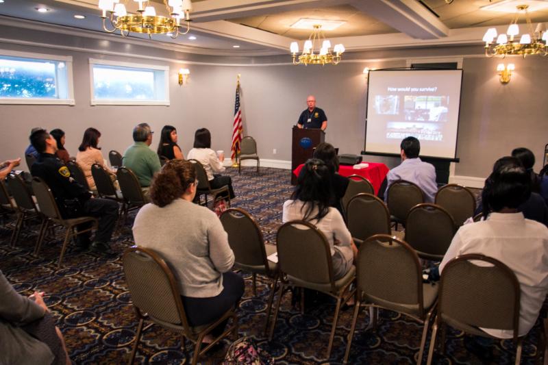 Mr. Danial emphasized the importance of Situational Awareness. Be aware of people's behavior and be aware of your surroundings. Action beats reaction. Plan where you could go. Be mentally prepared to defend yourself. Can you lock or block the door? Turn off lights in the room and turn sounds off on cell phone. Know where exits are located.