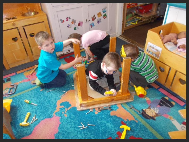 | | Using a hammer and nails to fix a table! |