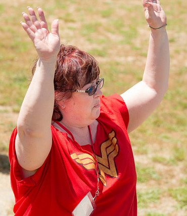 Wonder Woman (AKA Laurie Allen) keeping the kids excited at our Summer Kick-Off Hullabaloo.