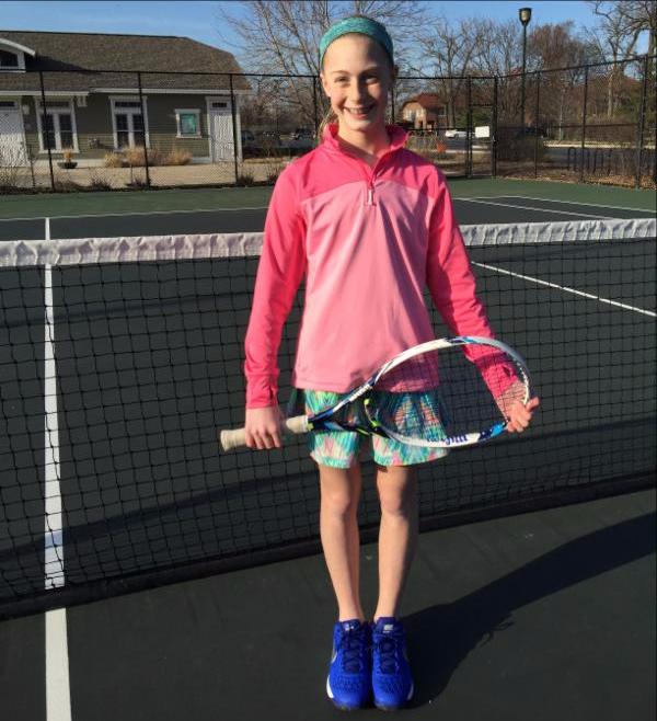 Caroline Blair, a 12-year old sixth grader who has participated in club groups for just over a year, won her first match in a USTA tournament over the Spring break at College Park Athletic Center, defeating Savannah Webb of Green Grove 7-5, 7-6 in a 2 1/2 hour match. It was her second USTA tournament. Playing USTA tournaments is an important step for players who aspire to high school varsity success, providing a chance to compete against the best of their peers in Chicago and northern Illinois. Congratulations to Caroline!