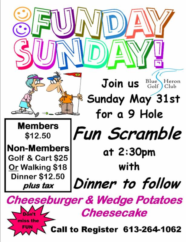 The weather has been great. Lots of golfers are taking early advantage to hone their golfing skills for the season. May continues to be a busy month. All of our leagues have started. Our first Nine & Dine will also start this coming Sunday, call to book today! Our popular Fun Scramble is open to everyone, book now to secure your spot. Throw back Thursday has been very popular among customers this month, don't forget to present coupon on check in. We hope you enjoy reading this newsletter. Please feel free to pass it on to friends and family.  We look forward to seeing you soon around the Club! Sincerely, Joan & Dennis Sobil Blue Heron Golf Club