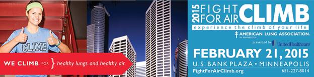US Bank Plaza, Minneapolis, MN The Fight For Air Climb is a unique event where individuals or teams race, run or walk up the 680 stairs/31 flights to reach the top of the U.S Bank Building in Minneapolis.