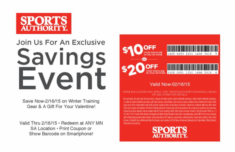 Save Now - 2/16/2015 Redeem at ANY MN Sports Authority Location - Print Coupon or Show Barcode on Smartphone!