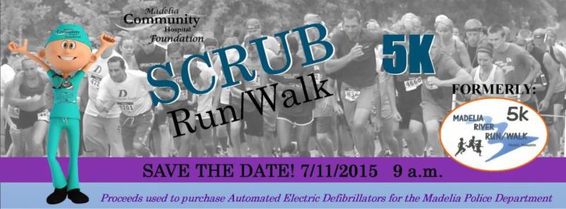 Saturday, July 11 Madelia Town Hall, Madelia, MN The beautiful Watonwan River valley is the site of the Madelia Scrub/Run Walk 5K, formerly known as the Madelia River Run. The name and theme were changed this year to draw attention to our health care focus and to help raise money for an important local cause, to purchase cardiac defibrillators for the Madelia Police Department. Racers are encouraged to wear scrubs or dress up like a favorite medical character from TV, like Dr. Grey, "Hot Lips" Houlihan, Doogie Howser, M.D. Everyone is invited - runners, walkers, families with strollers, and spectators. Let's have some fun and raise money to save lives! REGISTER HERE!
