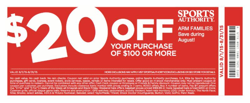 Valid 8/1-8/30 at any MN Sports Authority! Download this coupon or show it on your smartphone when you check out.