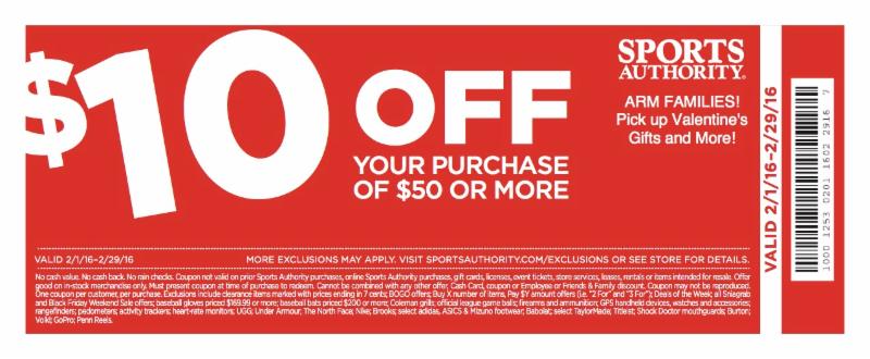 ARM participants and families, take $10 off your purchase of $50 or more throughout the month of February at Sports Authority. Click on the coupon below to print savings certificate.