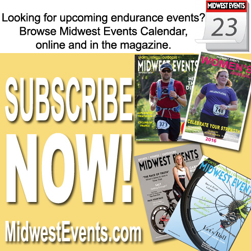 Midwest Events Sports and Fitness Magazine is published 6 times per year and distributed at key outlets, including all the major running stores, bike, ski and tri shops, health clubs, plus strategic skyway, coffee shop and health-related locations.