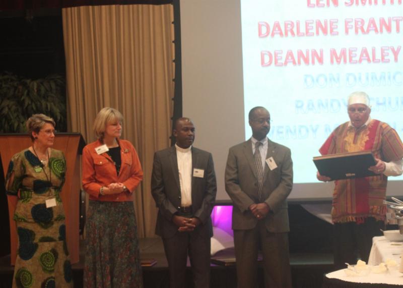 Some of COVE's first Board Members attended this year's Seeds of Hope event. (From left to right: Darlene Frantonius, Deann Mealey, Fr. Hilary, Len Smith.)*