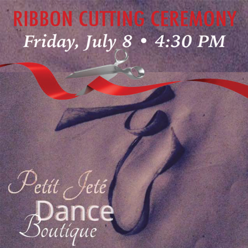 You are invited to join us for an official Ribbon Cutting Ceremony at Petit Jete Dance Boutique, 124 Senter Place, followed by an Open House featuring snacks, special cupcakes and ballet slipper lollipops after the ceremony! Receive 10% off purchases all day (July 8) and enter a raffle for a Petit Jete gift certificate.