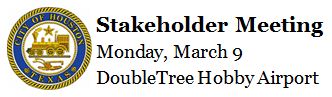 Council Member Robert Gallegos and the Hobby Area Management District will host a stakeholder meeting Monday, March 9 from 6:30 p.m. to 8:30 p.m.