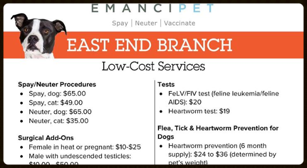 Help us reduce and prevent animal overpopulation in our community by spaying or neutering your pet. Pet owners now have many affordable pet healthcare and veterinary service options. Check out the many low-cost services Emancipet Houston and BARC's Fixin' Clinic provide by clicking the following images: