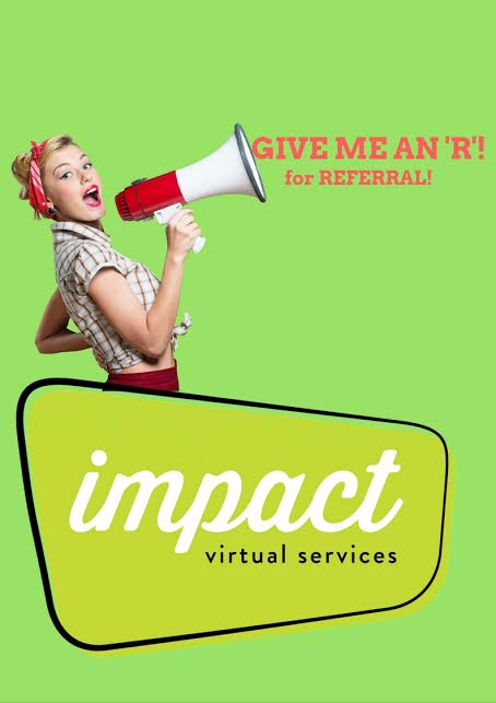 If you are a company managing LARGE association clients and have someone approach you for a smaller association management job, we would love it if you would please give us an "R" or referral to impact Virtual Services! If your shout out to us leads to a new client contract, we will happily give you $250 cash or take it off of your invoice!