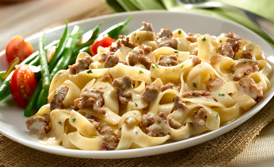 Beef Stroganoff with Noodles delicately braised beef in a luscious sour cream sauce, tossed with freshly cooked egg noodles $13.99/lb