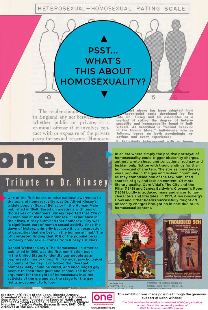 The ONE Archives Foundation is excited to announce our new Traveling LGBTQ History Exhibitions! These innovative, high quality traveling exhibitions educate, engage and enthuse the general public about significant events and individuals in LGBTQ history.