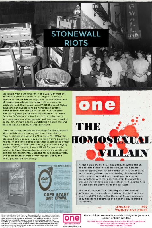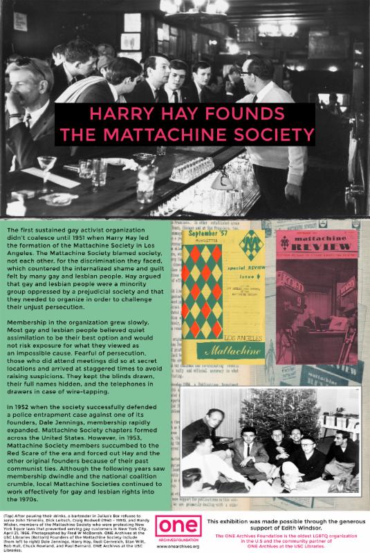 Just in time for Pride month, the ONE Archives Foundation is excited to announce that we have several new Traveling LGBTQ History Exhibitions ready for purchase! These innovative, high quality exhibitions educate, engage and enthuse the general public about significant events and individuals in LGBTQ history. Perfect for Pride events, LGBT History month, Employee Resource Groups, Community Events, libraries, schools, fundraisers etc., these exhibitions feature hundreds of rare images and many never before seen documents from ONE's renowned collection along with informative text that enrich and deepen the general public's knowledge of LGBTQ history.