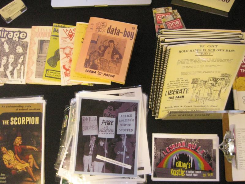 Images: (Top) Cynthia Wang, Andy Rutkowski, Alan Bell, and Joseph Hawkins presenting at Mapping Queer Terrains on Wednesday, 30 October 2015. (Second down) Select panels from History of the LGBTQ Civil Rights Movement series at Proud Stories in Grand Park LA on Saturday, 3 October 2015. Photo by: Javier Guillen. (Third down) Jeff Snapp and Kyle Morgan at ONE Archives table for Archives Bazaar on 17 October 2015. (Fourth down) Materials displayed at Archives Bazaar on 17 October 2015. (Bottom four) Photographs taken at KillJoy's Kastle on October 16, 2015. Photos by Tony Coehlo.