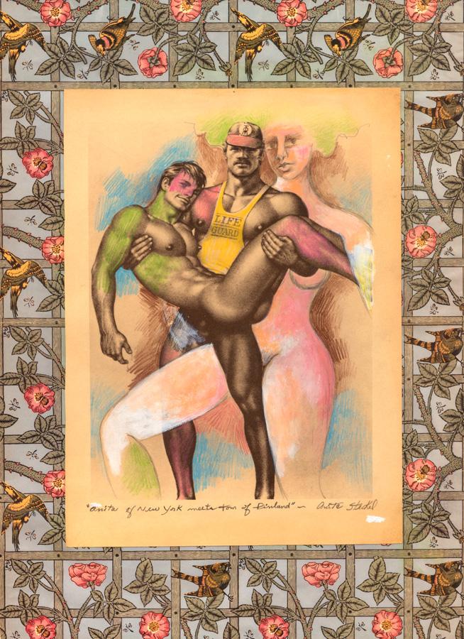 | Images: (Top) Anita Steckel, Anita of New York Meets Tom of Finland, 2004/2005. Mixed media on book pages, 19.6 x 13.5 inches. Photo by Adam Reich. Courtesy Estate of Anita Steckel and the Suzanne Geiss Company, New York (Bottom) Olaf Odegaard, Title unknown, c. 1985. Mixed media collage. ONE Archives at the USC Libraries