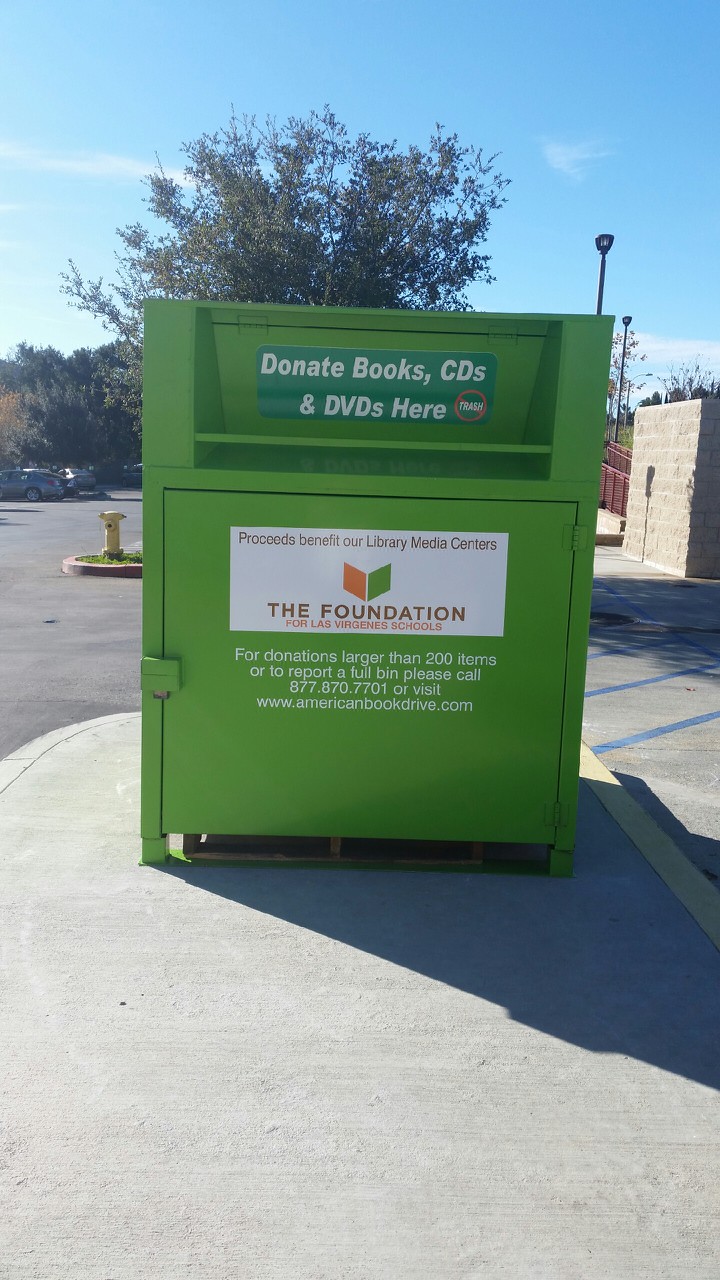 Donate your old books, CDs and DVDs wherever you see our big green bins. We'll turn them over to American Book Drive. They'll sell them and turn them into cash, a portion of which will go to The Foundation for Las Virgenes Schools, to buy more books and make our Library Media Centers stronger.