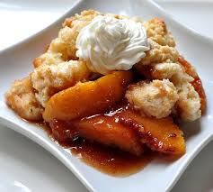 - Remove peaches from oven, and drop spoons of topping over them. Sprinkle sugar and cinnamon mixture over cobbler. Bake about 30 minutes or until golden brown.