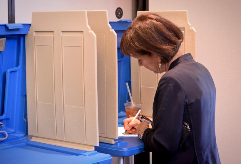 Chancellor Folt votes early in fall 2015. Photo courtesy of UNC-Chapel Hill.