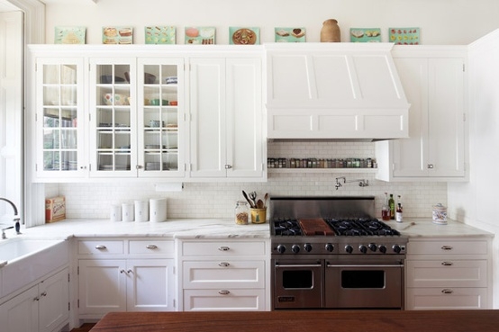 However, I do acknowledge that done correctly, well placed accessories can add a bit of style to any kitchen. But there are a few guidelines. First, you should have enough clearance between the cabinet and ceiling to display accessories, at least 20"-24". Otherwise they'll look like you've stuffed them in there. If you're installing a backsplash, consider tiling the entire wall, including the wall on top of the cabinet. The tile then becomes the focal point and there is no need to display anything else.
